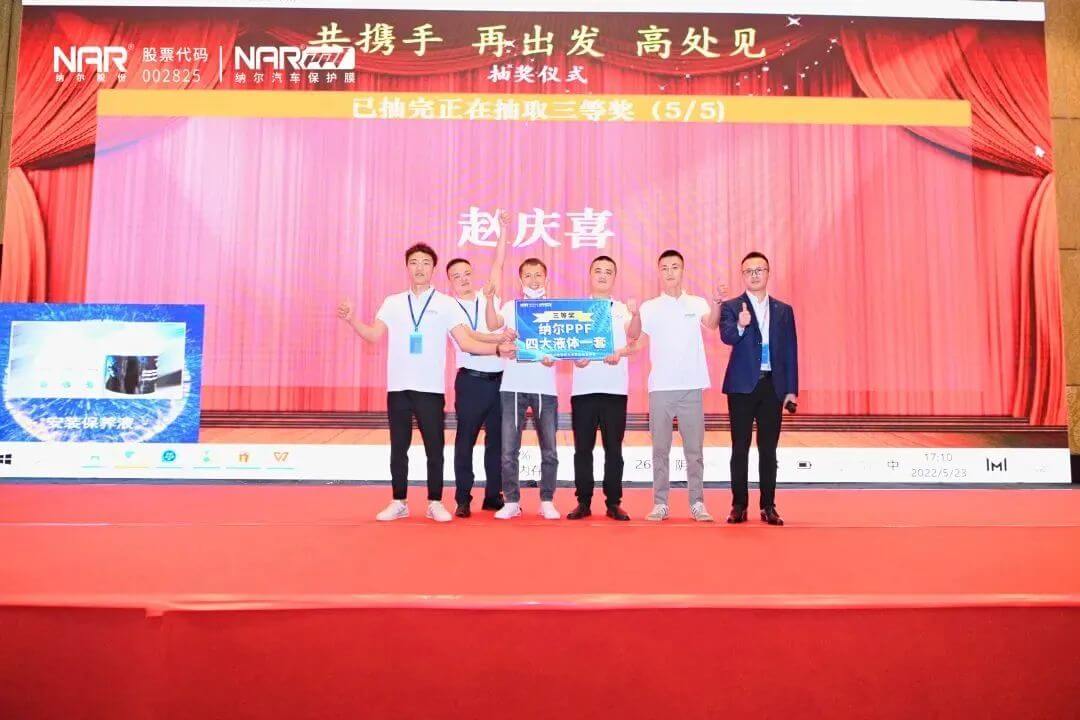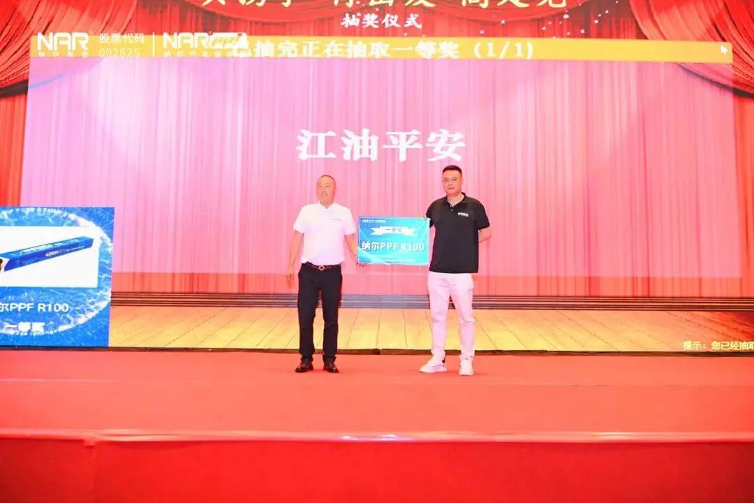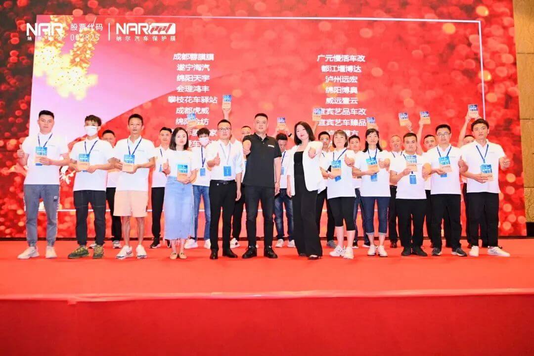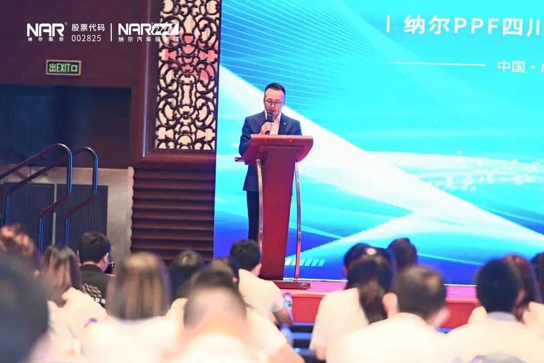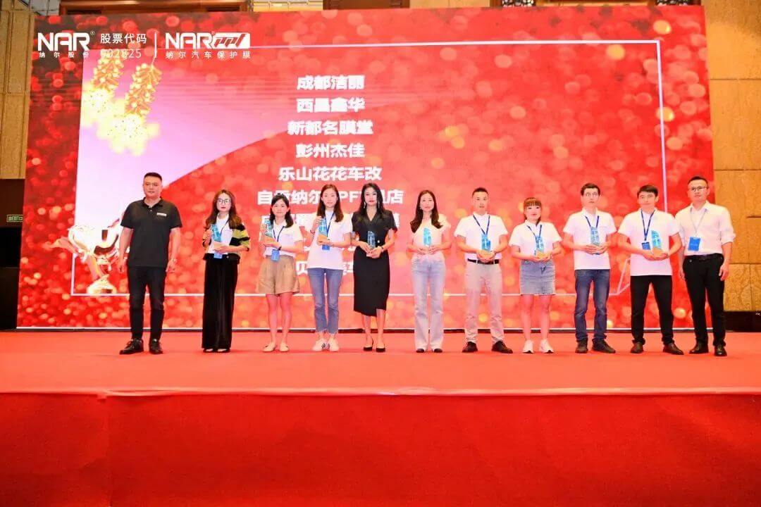 Xie Mingxing ผู้จัดการทั่วไปของ Nar PPF (China) Brand Operation Center และ Wang Huquan ผู้ให้บริการระดับจังหวัดของ Nar PPF ในมณฑลเสฉวน มอบรางวัลให้กับร้านฟิล์มทองคำของผู้จัดจำหน่ายระดับประเทศ